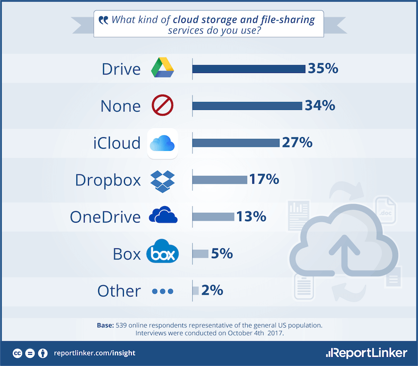 Even so, as Americans share more information across the internet, the risk of having personal data hacked increases. More people are using cloud storage and file-sharing services, even though one in four Americans say they don’t use these services at all. Google Drive and Apple iCloud are the most popular services, ReportLinker found.